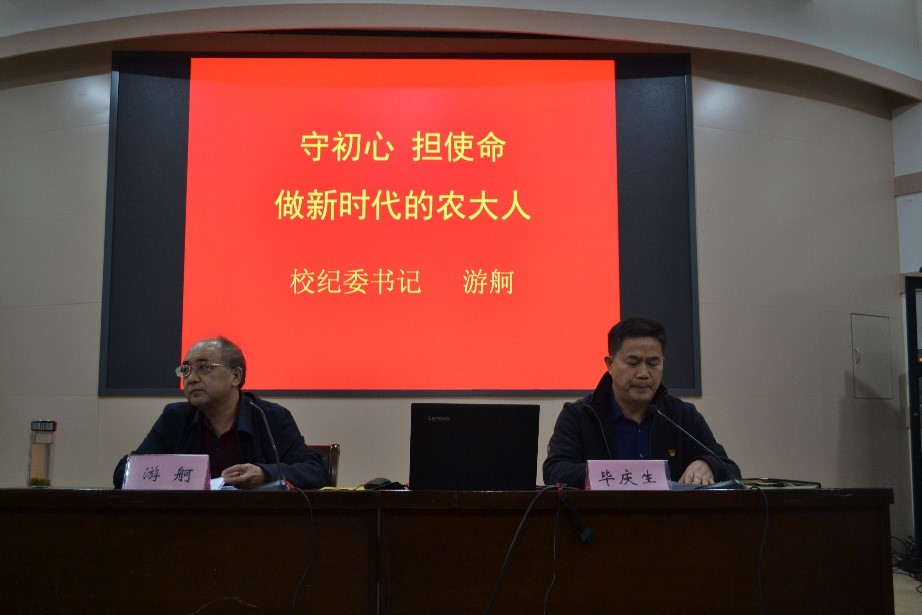 游舸对广大党员提出六个必须:必须坚持党的领导;必须坚持立德树人的根本任务;必须坚持师生的主体地位;必须扎根中原沃土,发挥我校以农为特色的优势;必须传承传统;必须解放思想,进一步做好创新。