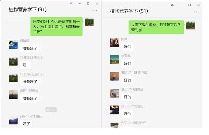 王宜伦教授利用微信群提前20多分钟提醒同学们进行网上教学活动。网络崩溃后,启用微信群交流继续学习。他深刻感受到“今后线上和课堂相结合,教学效果会更好!”