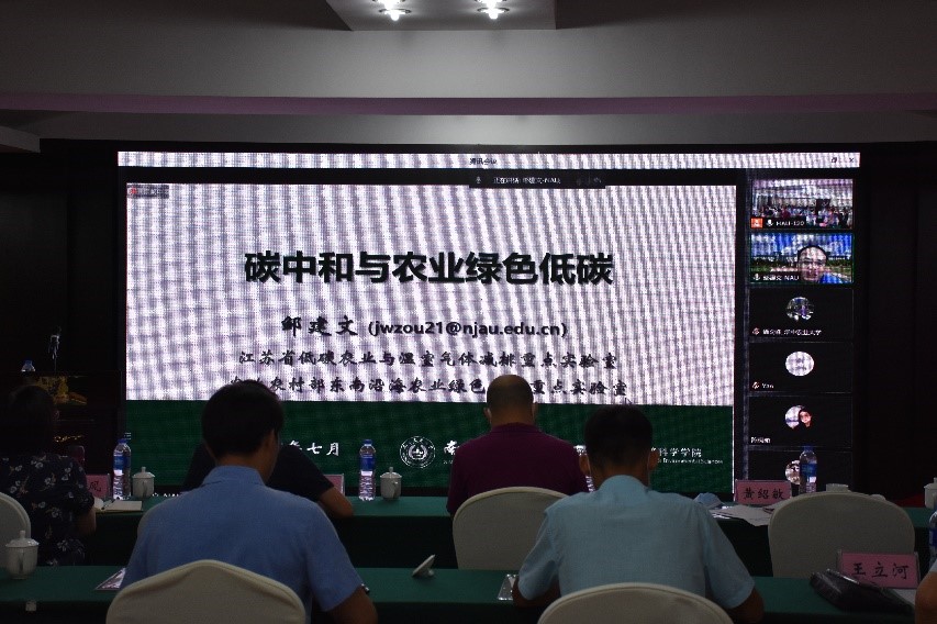 南京农业大学邹建文教授以《碳中和与农业绿色低碳》为题做了主题报告。阐明了我国实现碳中和的意义及价值;提出了通过减少肥料用量和优化肥料结构、提高肥料利用效率、优化秸秆管理等技术措施实现土壤固碳与温室气体减排;阐释了绿色低碳农业的内涵,指出环境新材料与绿色农业、环境新型污染物与阻控、环境新技术与生态过程、数据新方法与环境效应和生态新理论与土壤健康等“五新”技术是实现低碳农业的前沿支撑。