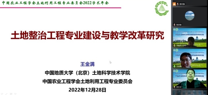 、河南省自然资源监测和国土整治院、河南省土地学会等单位承办的中国农业工程学会土地利用工程专业委员会第三届学术年会以线上形式隆重举行。本次会议的主题为“生态文明与土地综合整治”,会议吸引了来自国内高校和科研院所的专家、学者、学生等共计1000余人参加。