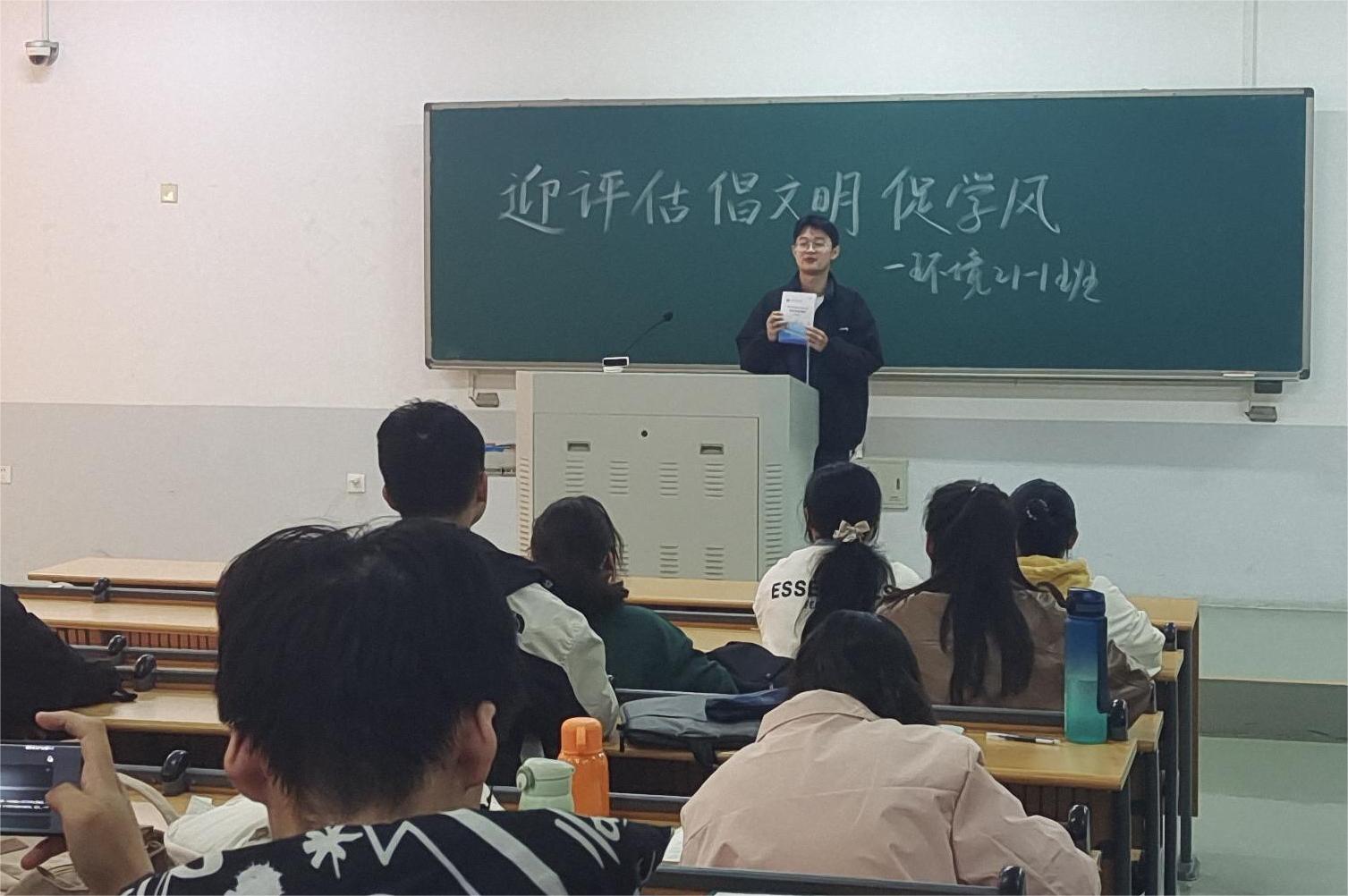 期间,各班同学首先认真学习了《本科教育教学审核评估应知应会手册(学生版)》,对评估工作的相关纪律要求有了初步认识,并意识到教育评估与学校和个人发展密切相关。接着,各班通过小组讨论、知识问答等方式,就如何加强班级文明建设与学风建设展开激烈讨论。同学们踊跃发言,并在个人言行举止、课堂纪律、宿舍卫生等方面提出高标准、严要求。