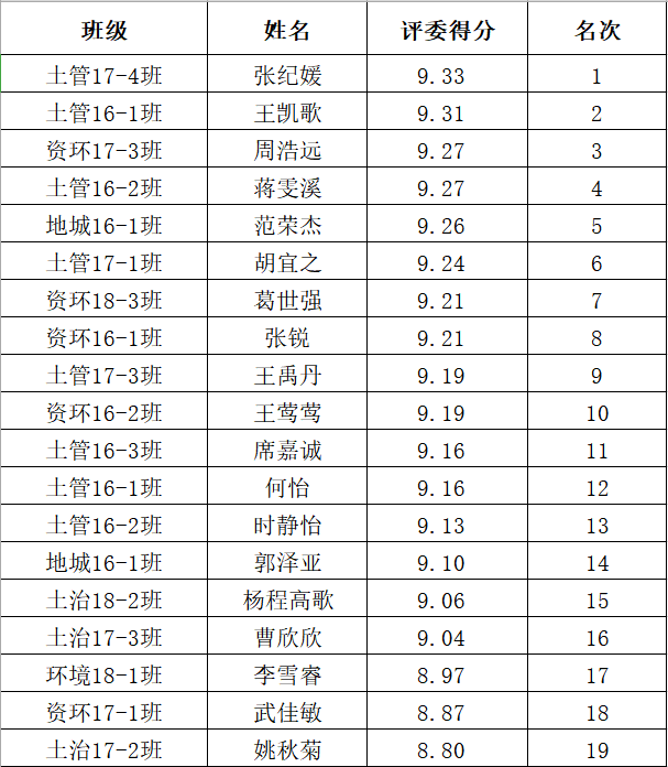 源与环境学院第十三届十佳大学生现场面试得分公示