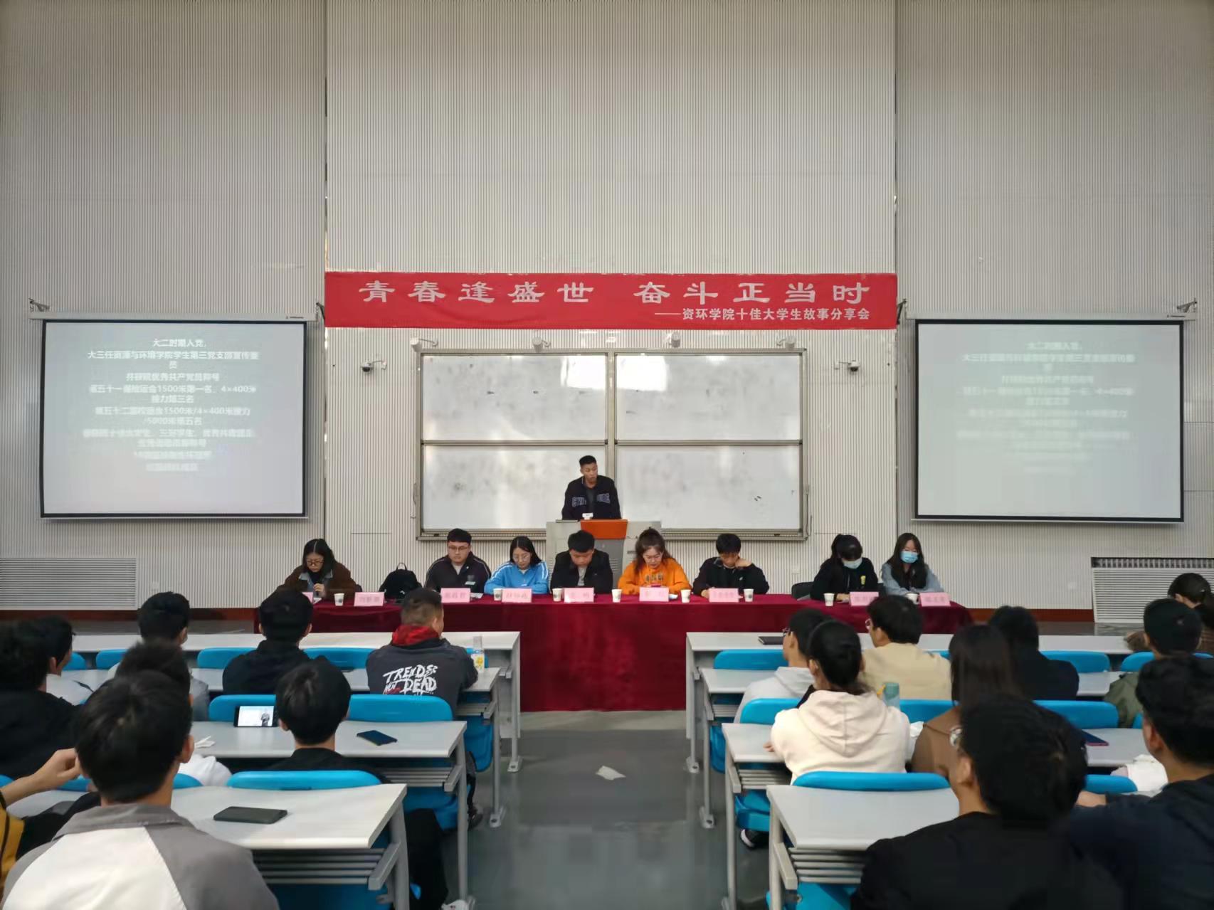 于10月31日在龙子湖校区大教室4开展“青春逢盛世,奋斗正当时”资环学院十佳大学生故事分享会。本次会议由团委老师黄春萌主持,2021级新生共同参加。