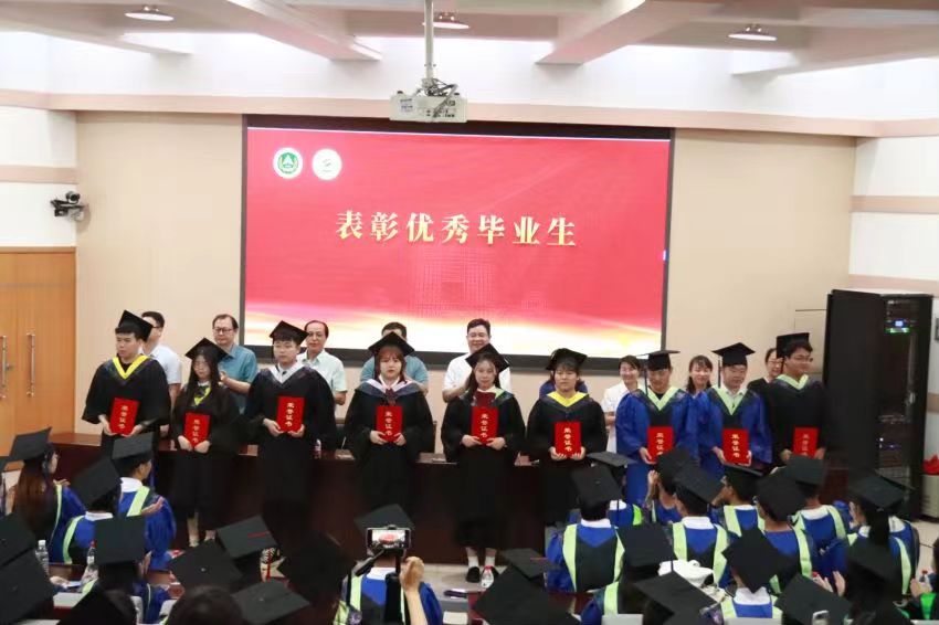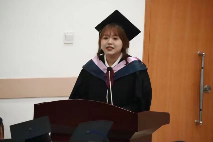 在庄严肃穆的国歌中,毕业典礼正式开始。李国权书记宣读优秀毕业生表彰文件,台上领导老师为优秀毕业生代表颁发证书。毕业生代表李佳琪通过回顾大学四年的精彩生活,表达了自己对学校和老师的感激与不舍;教师代表李岚涛通过分享自己的求学经历,勉励毕业生们保持正直品格,继续努力学习,不断追求卓越。最后,王宜伦院长致辞,既对大家顺利完成学业表示热烈祝贺,也向毕业生的前程表达衷心祝福。希望大家能够永葆爱国情怀,以坚定信念扬起理想的风帆;锤炼进取品格,以奋斗姿态勇担时代的使命;培养创新思维,以开拓精神探索未知的领域;沉淀人文智慧,以深厚修养支撑追梦的旅程。